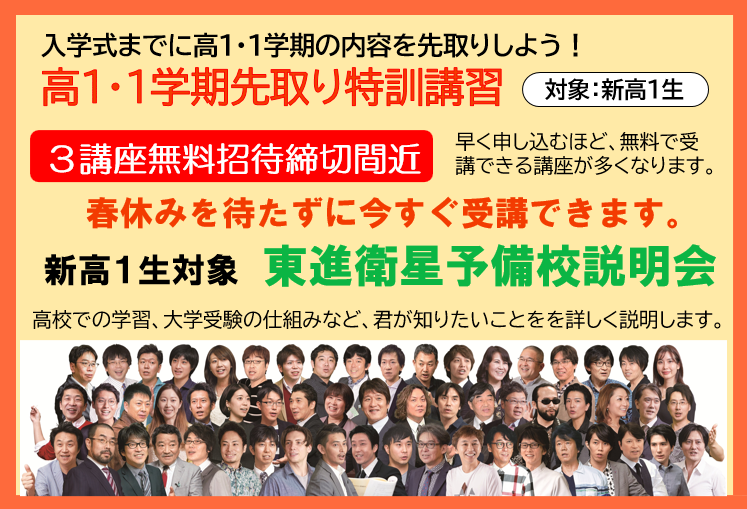 僕は高校二年生の冬から東進に友達と一緒に通い始めました。この「友達と一緒に」という部分が僕にとっては大きかったと思います。自習室で友達が頑張っている姿を見ながら自分も勉強できる東進の環境は本当に良いので毎日自習室に来て頑張ってください。